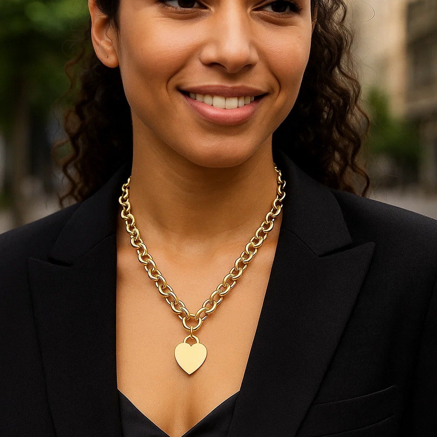 A 14k yellow gold necklace with rolo links, adorned with a charming heart tag, perfect for adding elegance to any outfit and closes with a lobster clasp. Measuring at an 18 inches length.