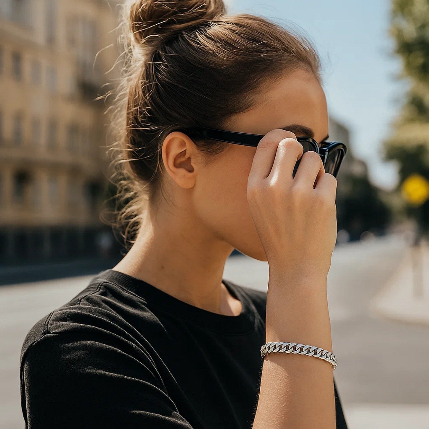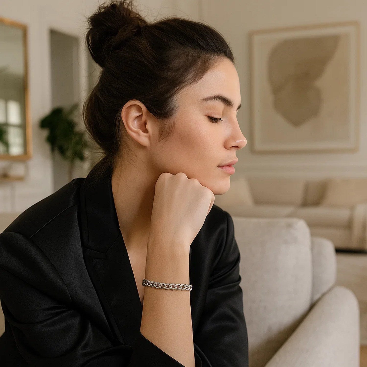 Classic polished links of Cuban chain form a wave of shine and beauty on this gorgeous 14K white gold bracelet. Bracelet is 7 1/4 inches long, 5.9mm wide, and closes with a lobster clasp.
