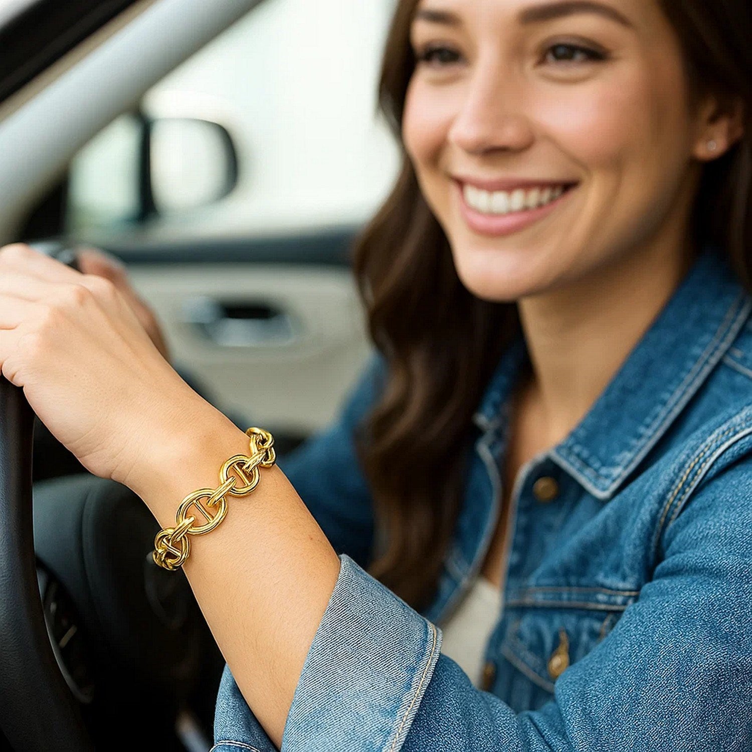 This Mariner Link bracelet beautifully crafted in 14k yellow gold with a high polish finish & closes with a spring clasp. Measuring 13.80 mm width & available in 7 inches length.