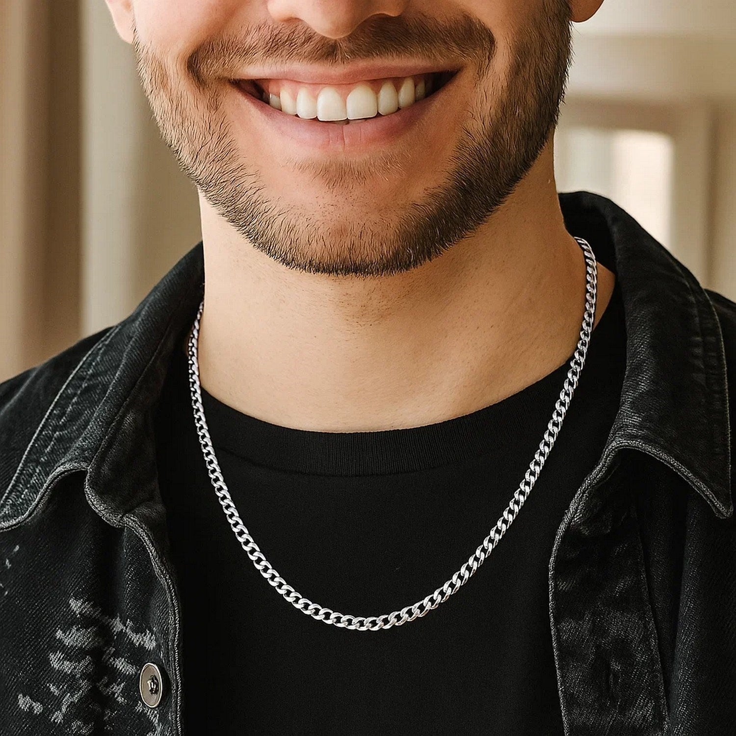 This solid curb chain comes in 14k white gold and has a width of 3.60 millimeters.
