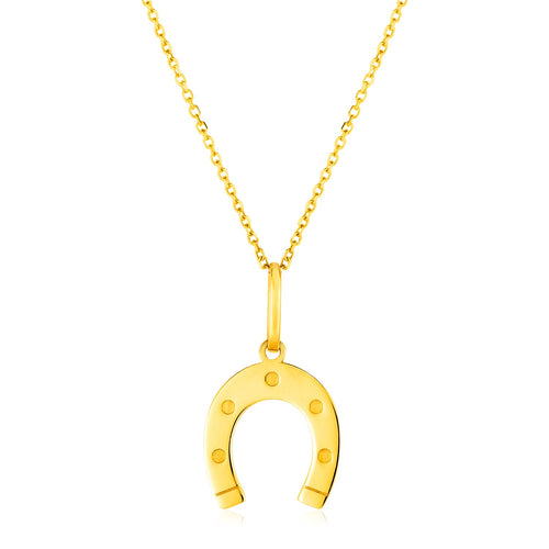 Luck will be with you always when you wear a polished 14K yellow gold horseshoe, suspended beautifully from exquisite chain. Necklace is 18 inches long.