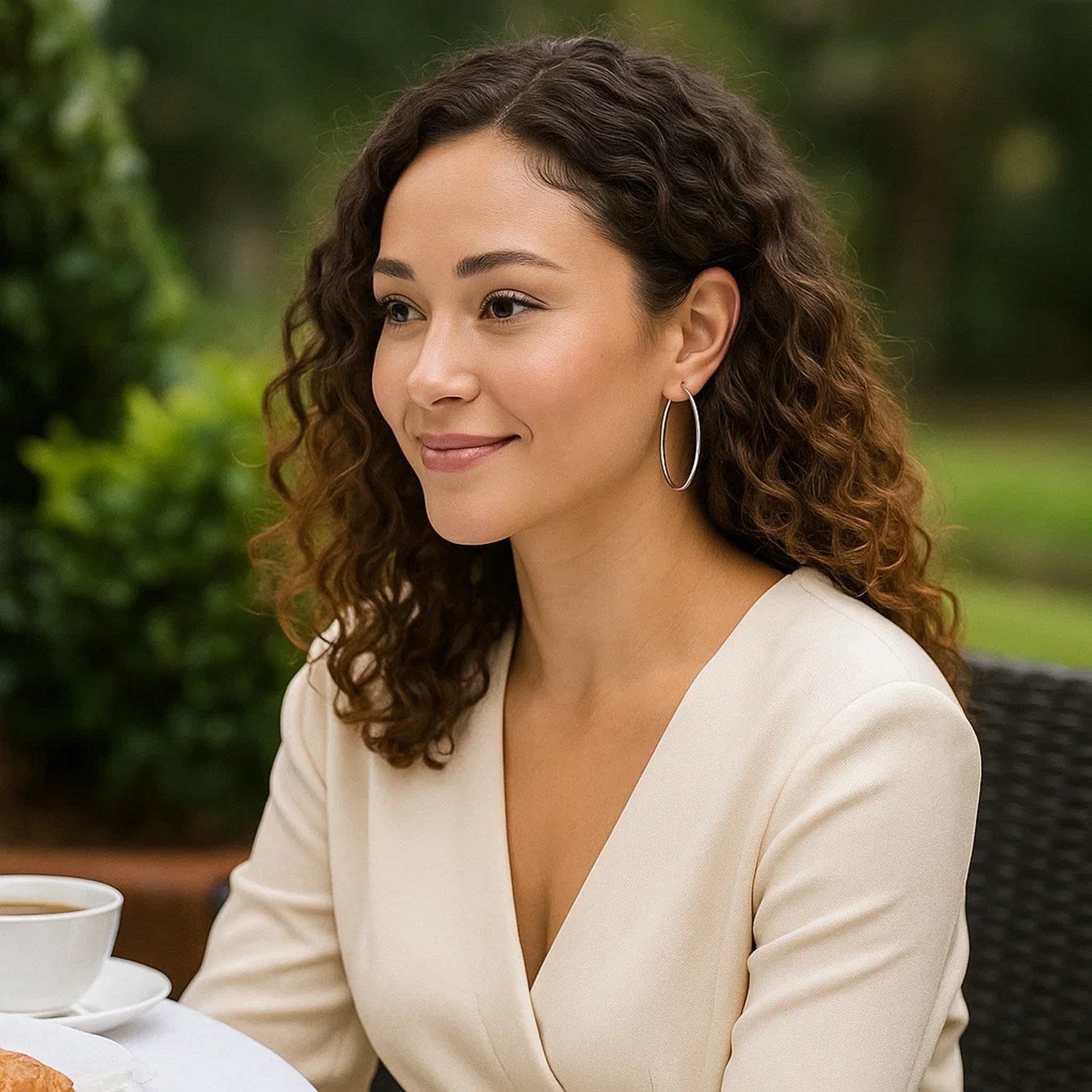 These timeless hoop earrings crafted in 14k white gold and measure 50 millimeters in diameter, featuring a snap lock backing.
