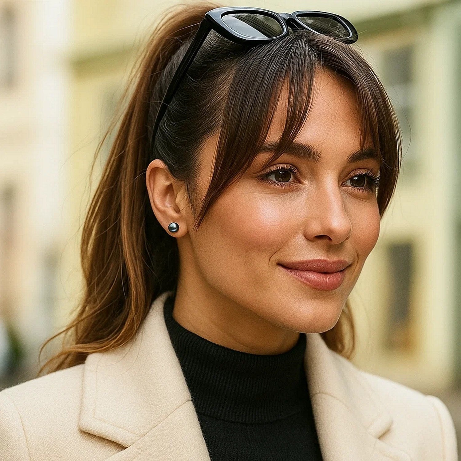 14k Yellow Gold Cultured Black Pearl Stud Earrings (7mm)